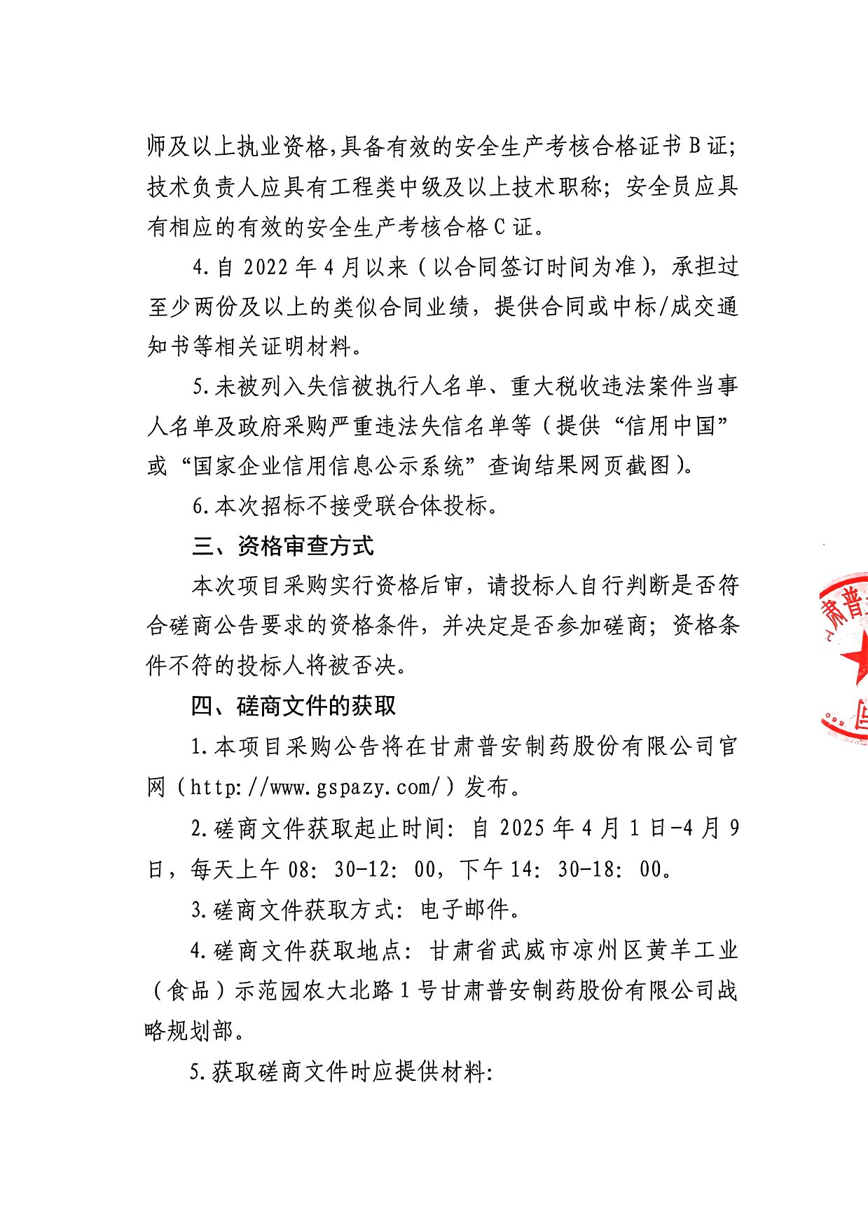 甘肅普安制藥股份有限公司2025年基礎(chǔ)設(shè)施改造項目-藥渣場及道路維修工程競爭性磋商公告